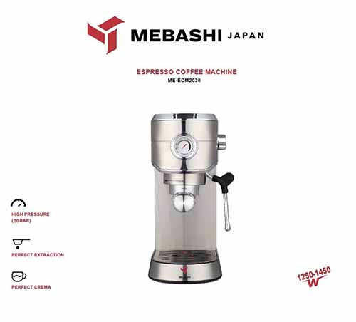 مباشی مدل 2030 یک اسپرسوساز خوشساخت، باکیفیت و اقتصادی از برند ژاپنی Mebashi است که برای مصرف خانگی یا ادارات کوچک انتخابی عالی به شمار میآید. این دستگاه با توان 1450 وات و فشار بخار 20 بار، امکان تهیهی اسپرسویی با کرمای مناسب و نوشیدنیهایی مثل کاپوچینو و لاته را برای شما فراهم میکند.